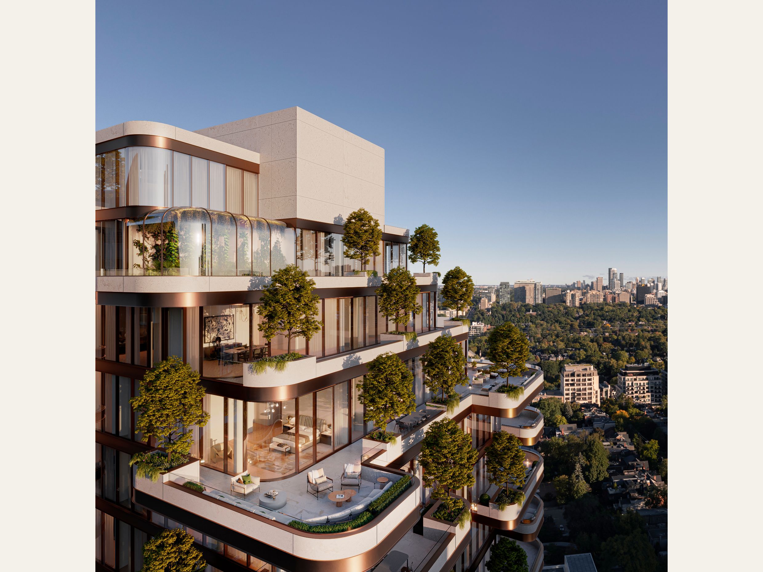 Anchoring the historic Yorkville neighbourhood, amid chic boutiques, five-star luxury hotels and world-class restaurants, 138 Yorkville will rise as a landmark residence standing as a testament to Yorkville’s past and its future. With soaring ceiling heights, floor-to-ceiling windows and grand terraces adorned with over 100 trees and greenery, each residence will become a skyward terraced villa where the interiors and exteriors flow as one.